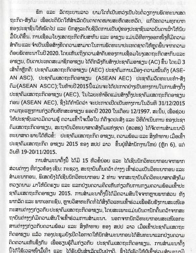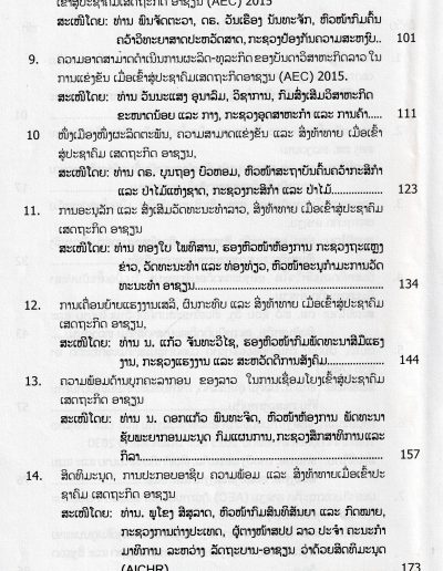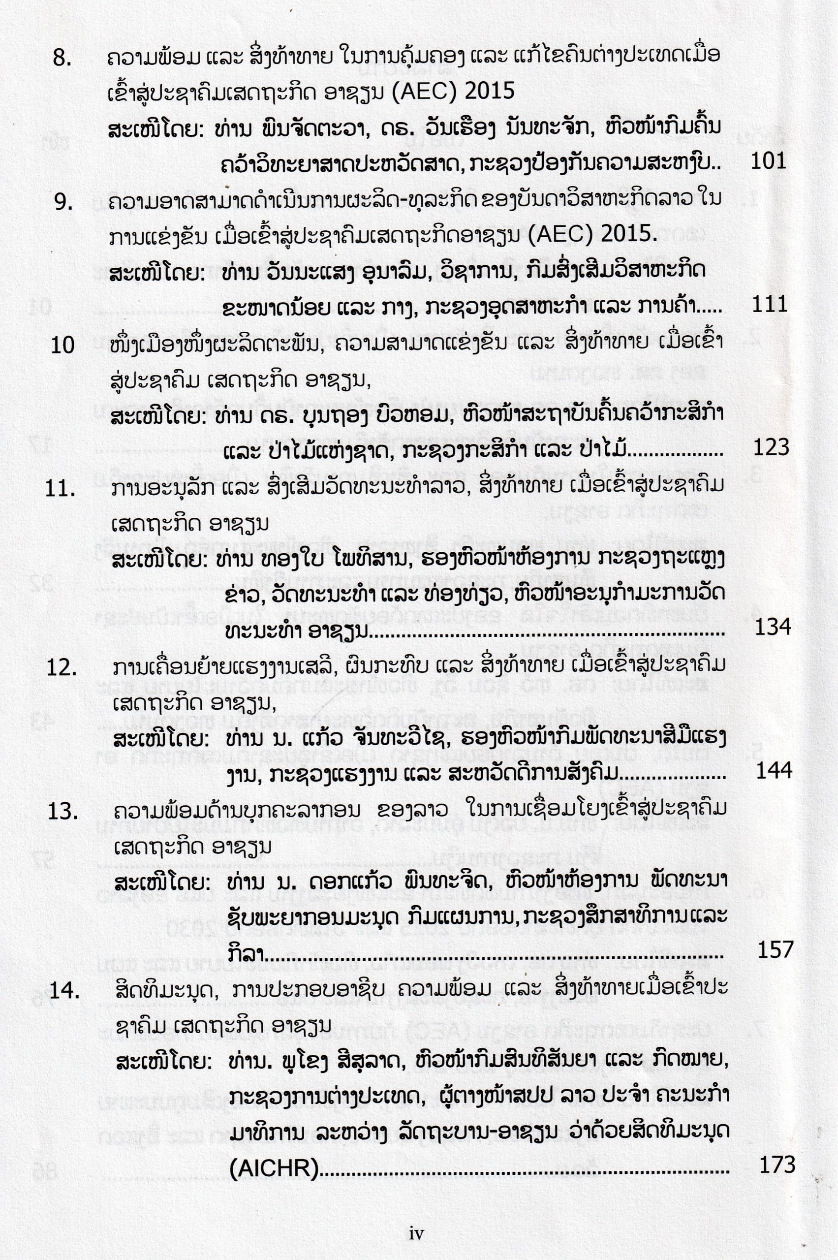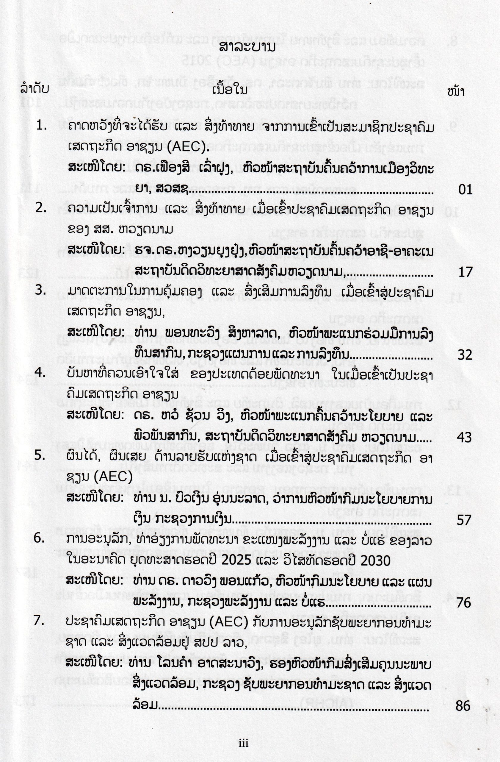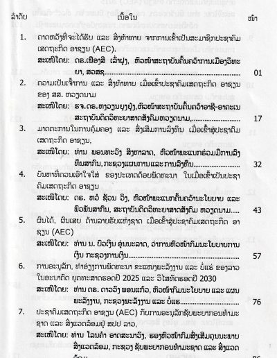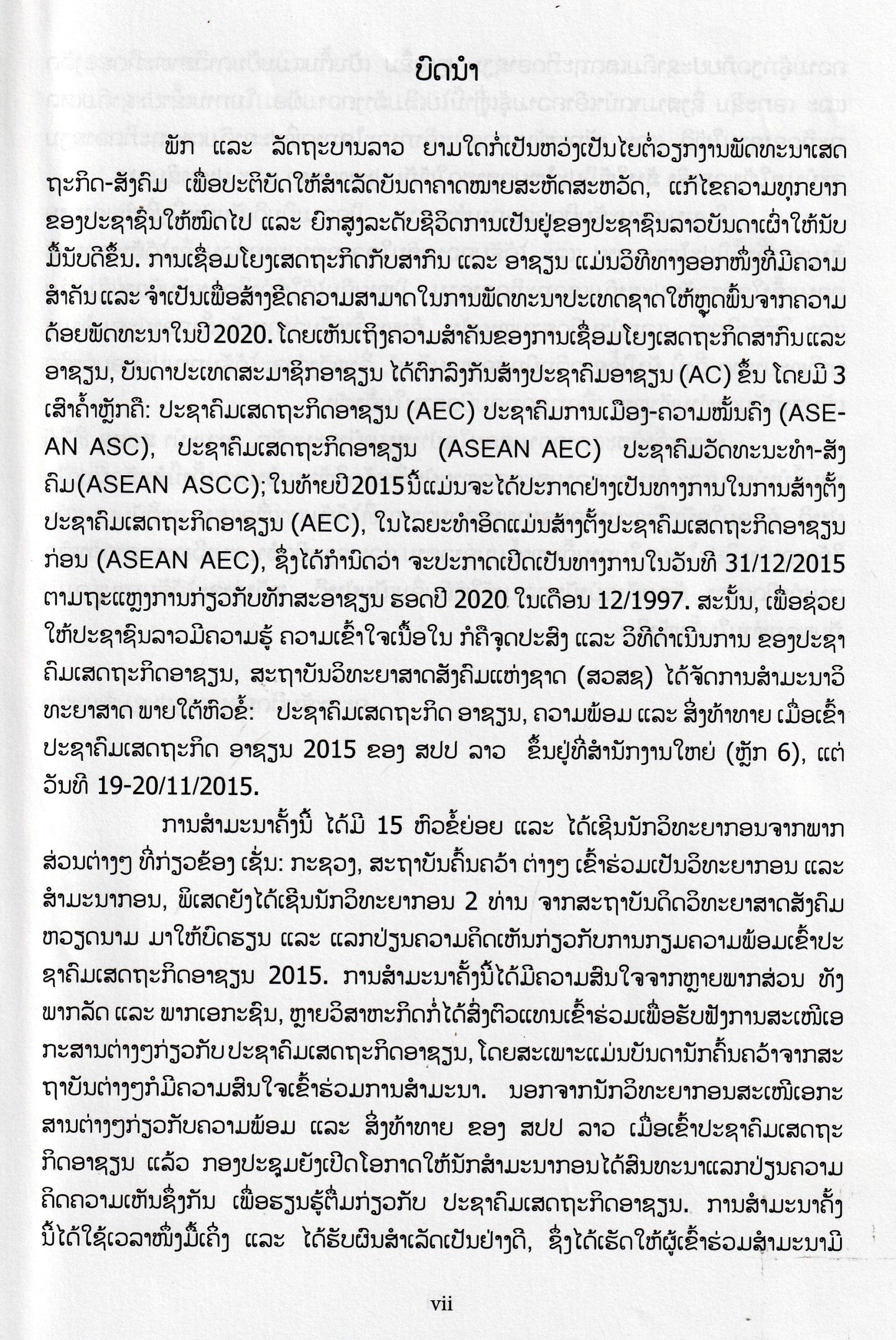 ເອກະສານສໍາມະນາວິທະຍາສາດ ປະຊາຄົມເສດຖະກິດອາຊຽນ 2015 ຄວາມພ້ອມ ແລະ ສິ່ງທ້າທາຍຂອງ ສປປລາວ