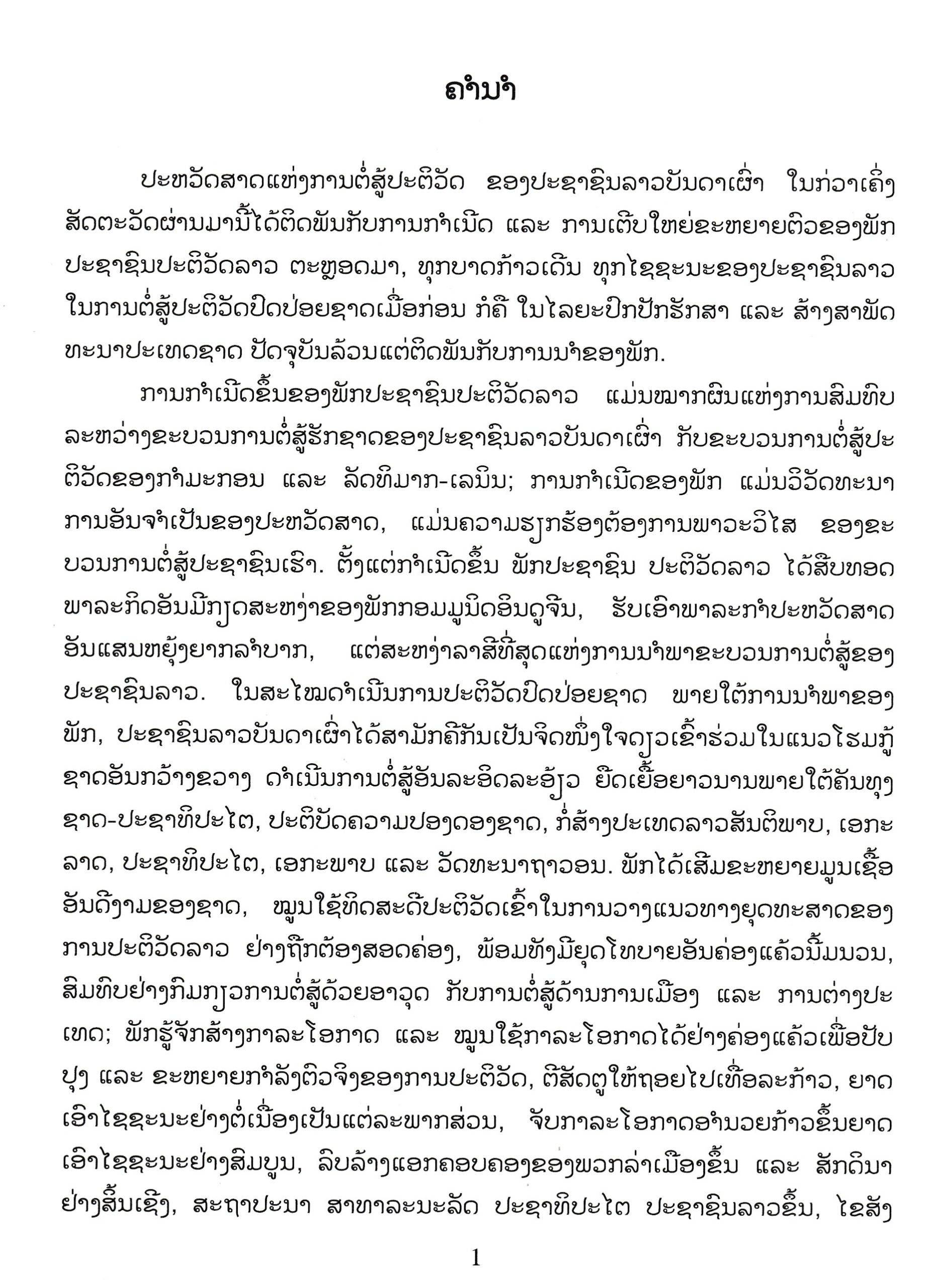 ເອກະສານກອງປະຊຸມໃຫ່ຍຄັ້ງທີ I-V ຂອງພັກປະຊາຊົນປະຕິວັດລາວ ເຫລັ້ມ I