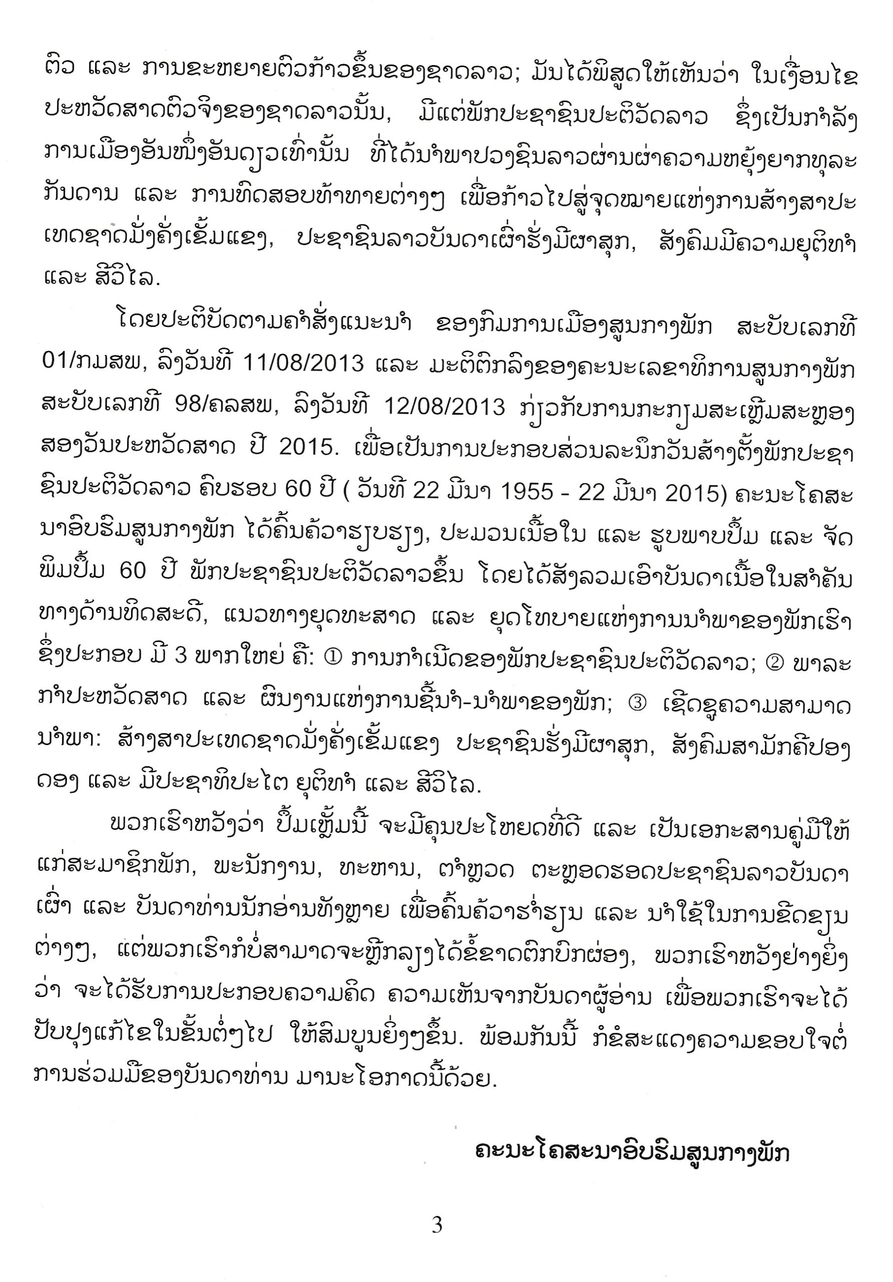 ຜູ້ແຕ່ງ :ຄະນະໂຄສະນາອົບຮົມສູນກາງພັກ