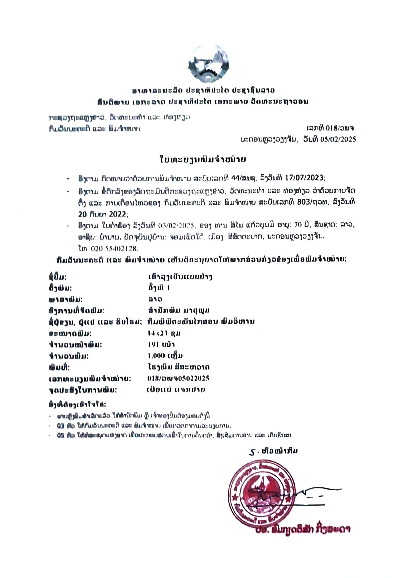 ປີທີ່ພິມ : 2025