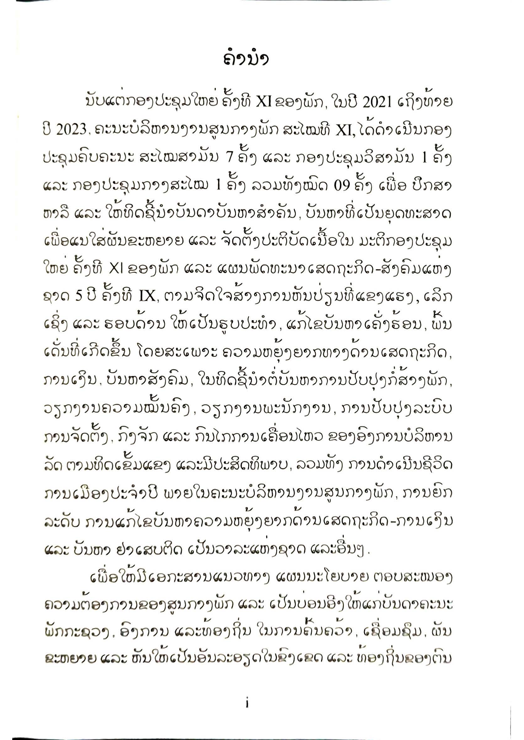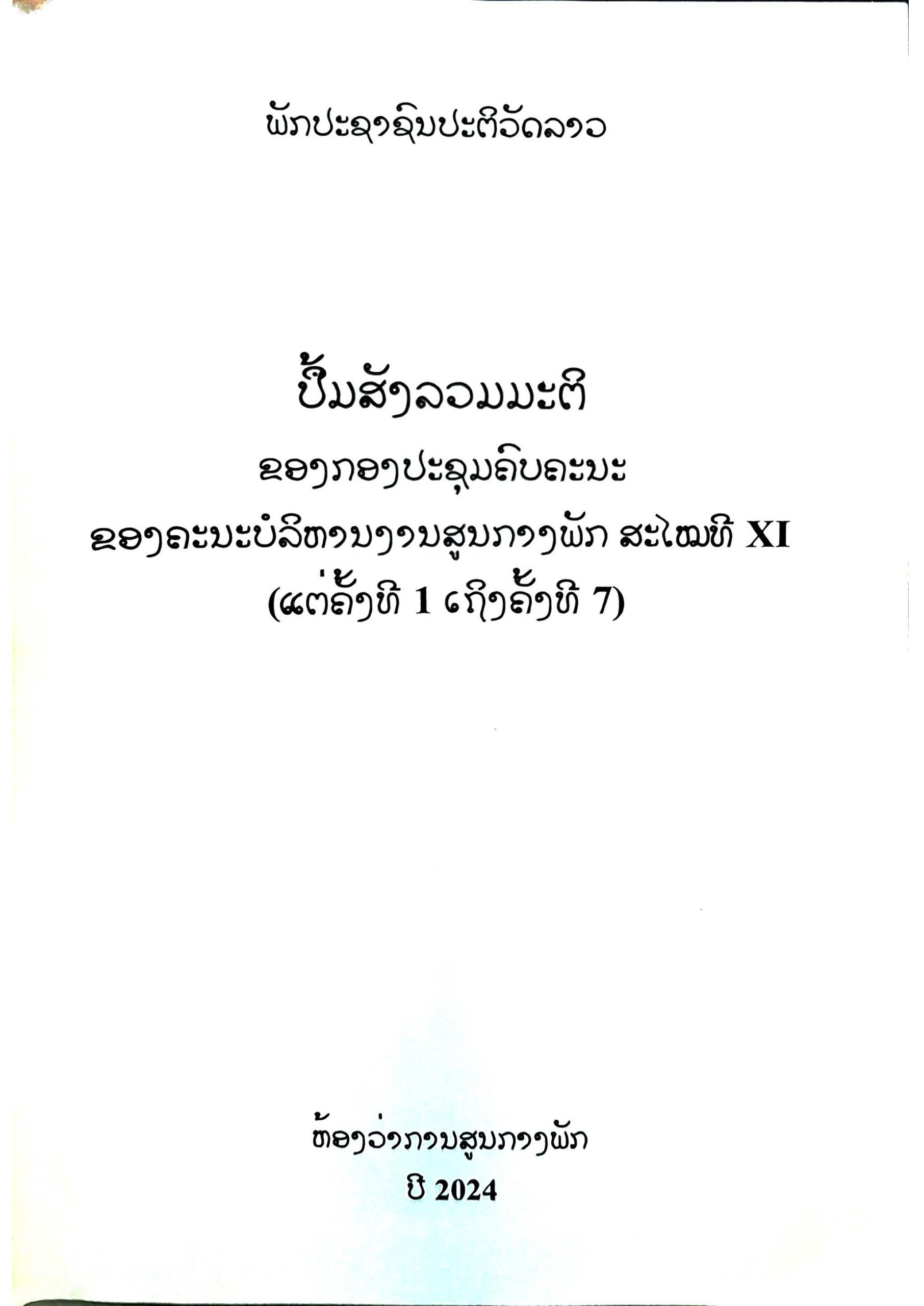 ປື້ມສັງລວມມະຕິກອອງປະຊຸມຄົບຄະນະຂອງຄະນະບໍລິຫານງານສູນກາງພັກ ສະໄໝທີ XI