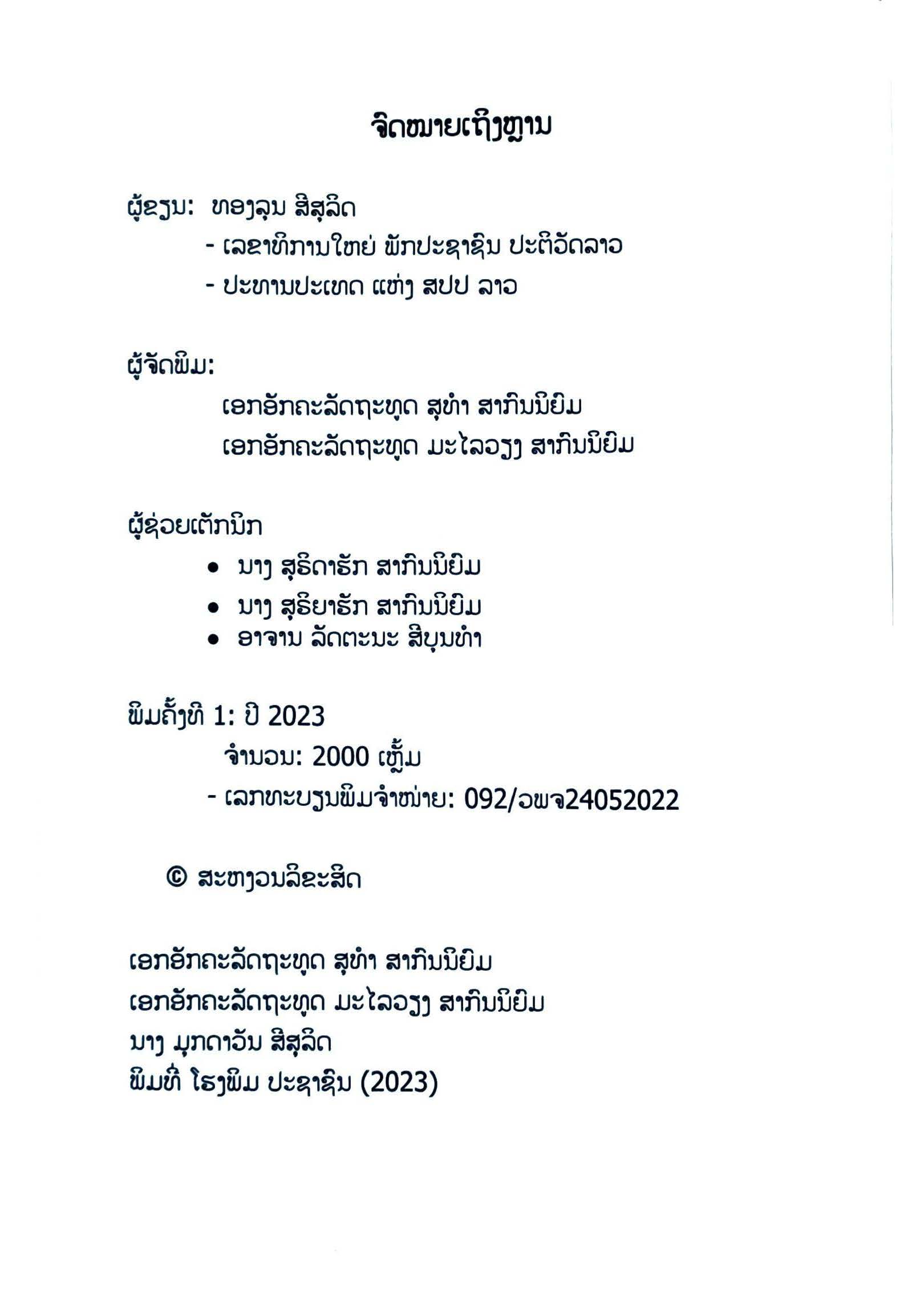 ພິມທີ່ : ນະຄອນຫຼວງວຽງຈັນ